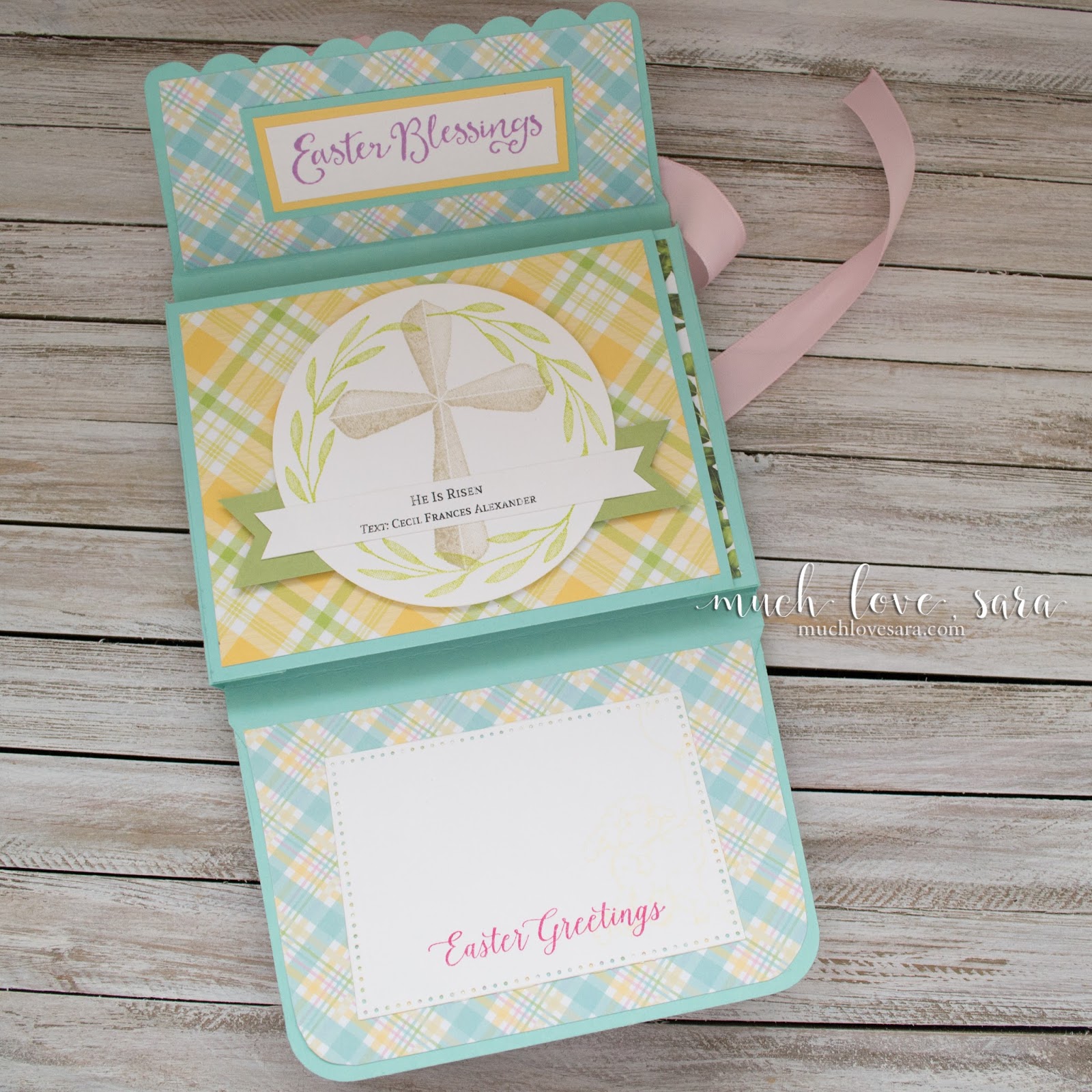 On Friday, I did a Facebook Live video showcasing the Envelo-Box die. This die is in the Bloom This Way Catalog, and is a really fun addition to your craft supplies. In addition to the standard Envelope Box (fits an embellished A2 sized card), you can used this die to create other fun things, like the little mini album/Easter card shown below.