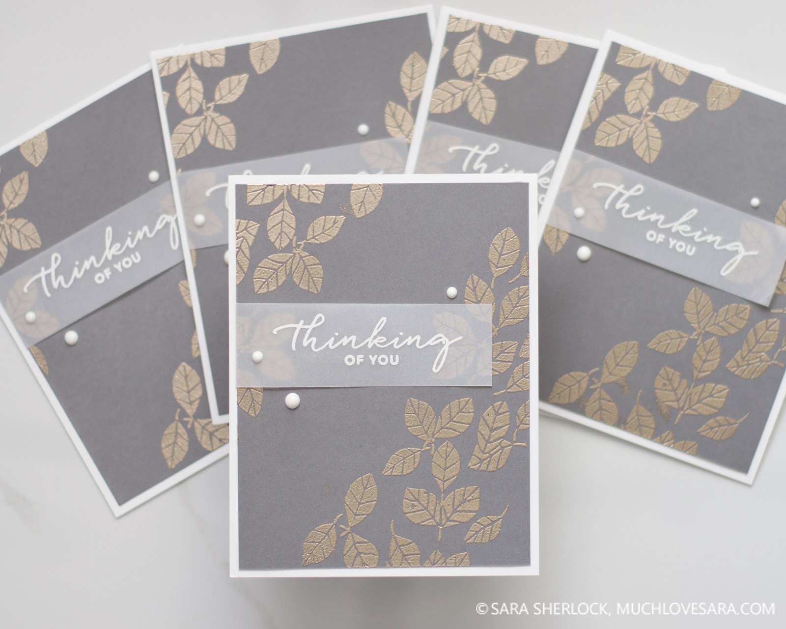 I'm sending out a lot more cards lately, are you? I have always loved pretty and simple cards, and right now it's so helpful to have a few stamp sets that work well with that style, and are perfect for making cards in bulk. The Uplifting Thoughts stamp set from Concord & 9th is one of those sets. The large graphic stamps make beautiful backgrounds, and the scripted sentiments are perfect for those cards that are a little tougher right now.
